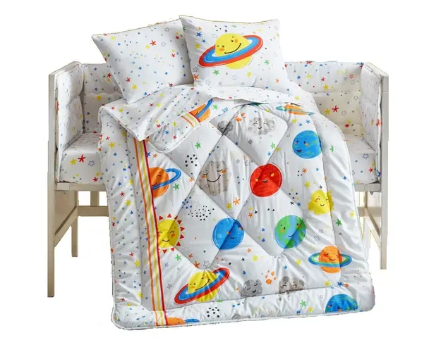 Lenjerie patut cu 6 piese Baby Ranforce Planet White