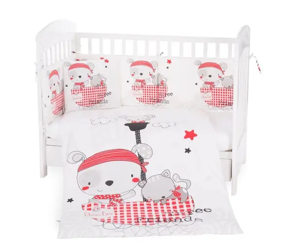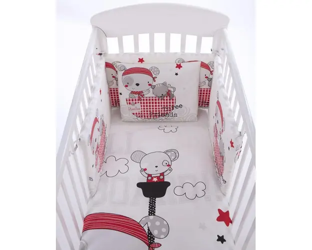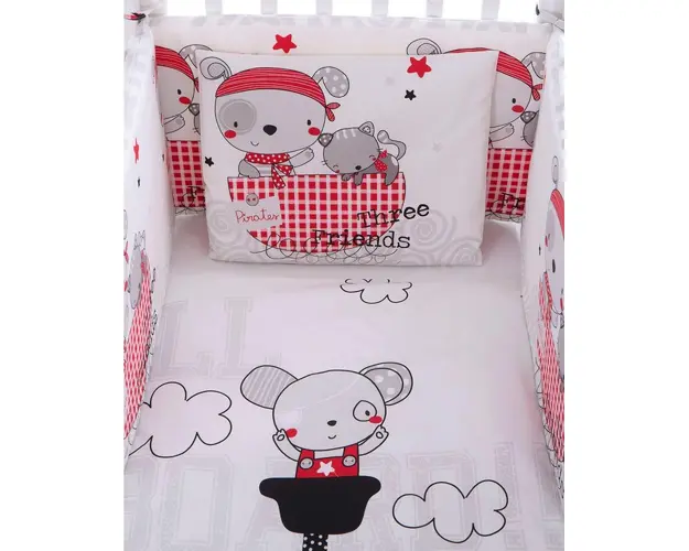 Lenjerie patut cu 6 piese si protectie laterala Pirates 140x70 cm
