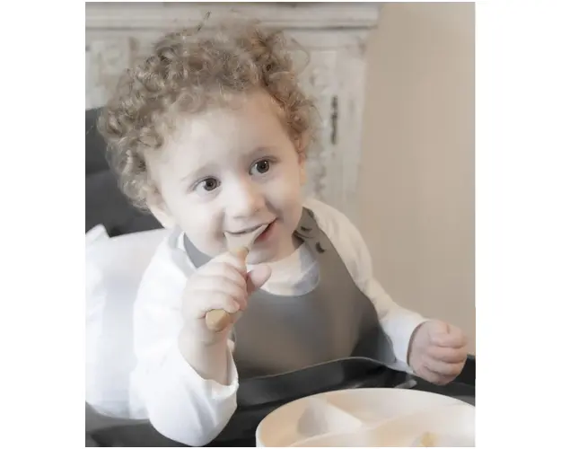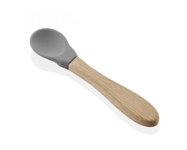 Lingurita BabyJem cu maner din lemn si cupa silicon Gri