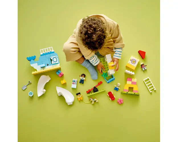 Data lansarii: 1 August 2023Adu distractia de afara in casa cu setul distractiv si adaptabil LEGO® DUPLO® Orasul meu Locul de joaca ideal (10991). Copiii de 2+ ani construiesc un loc de joaca fantastic, apoi se distreaza invatand, jucandu-se si facandu-ti prieteni noi.Jucarie pentru copii mici pentru sesiuni distractive de joacaUn cadou creativ de zi de nastere, aceasta jucarie educativa cu loc de joaca abunda in echipamente moderne. Micutii invata despre litere si numere, in timp ce escaladeaza structura in forma de balena. Exista o gama diversificata de personaje cu care copiii se pot imprieteni, intre care un practicant de skateboard si un caine-ghid adorabil! In timp ce se joaca cu aceste figurine, micutii se distreaza invatand abilitati sociale pe care le pot folosi in viata reala.Invatare prin joacaSeturile de constructie LEGO Orasul meu ajuta prescolarii sa exploreze lumea pe care o observa in jurul lor si sa interpreteze pe roluri viata moderna. Asemenea tuturor jucariilor LEGO DUPLO, si aceasta contine o diversitate de oportunitati de invatare. Caramizile viu colorate, usor de apucat, si partile mobile amuzante stimuleaza simturile copiilor si le dezvolta abilitatile motorii fine. Produsul cu denumirea Locul ideal de joaca face parte din brandul Coletto, se afla in categoria Jucarii outdoor si subcategoria Produse noi