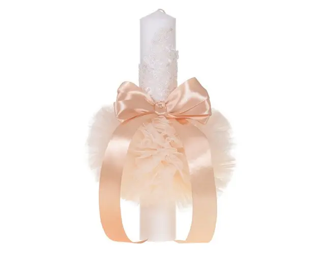 Lumanare botez glob cu dantela si trusou botez in landou, decor Ivoire cu floricele, Denikos® 755