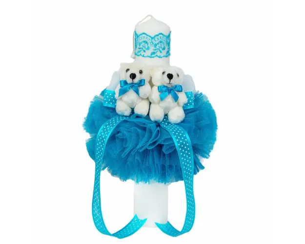 Lumanare botez glob cu ursuleti si trusou botez in landou, decor Turcoaz, Denikos® 593