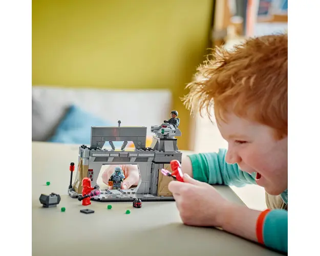 Construieşte intensitatea unei scene memorabile din sezonul 3 al serialului Star Wars: The Mandalorian cu setul LEGO® Star Wars™ Lupta dintre Paz Vizsla şi Moff Gideon (75386), conceput pentru fete, baieţi şi fani de 7+ ani. Un cadou fantasy grozav pentru copii, acest set cu jucarie construita din caramizi LEGO include o baza mandaloriana cu o uşa blindata cu un declanşator pentru trantirea uşii, panouri de control şi o turela rotativa care azvarle piroane. Setul include şi 4 minifigurine LEGO Star Wars: The Mandalorian de colecţie pentru a interpreta confruntarea dintre Paz Vizsla şi Moff Gideon (imbracat in armura de Dark Trooper) şi Garzile Pretoriene Imperiale, plus accesorii precum rucsacul cu propulsie al lui Moff Gideon şi o cutie de depozitare care conţine un detonator termal pentru joaca creativa.Imbunataţeşte aventura de construcţie a copiilor cu aplicaţia LEGO Builder, in care cei mici pot apropia şi roti versiunile digitale 3D ale construcţiilor, salva seturi şi monitoriza propriul progres.Baza mandaloriana poate fi conectata la formaţiunea stancoasa/peştera din Pachetul de lupta Ambuscada pe Mandalore 75373, vandut separat, pentru opţiuni suplimentare de joaca. Produsul cu denumirea Lupta dintre Paz Vizsla™ si Moff Gideon™ face parte din brandul Coletto, se afla in categoria Lego star wars si subcategoria