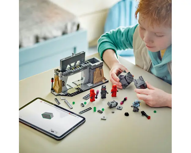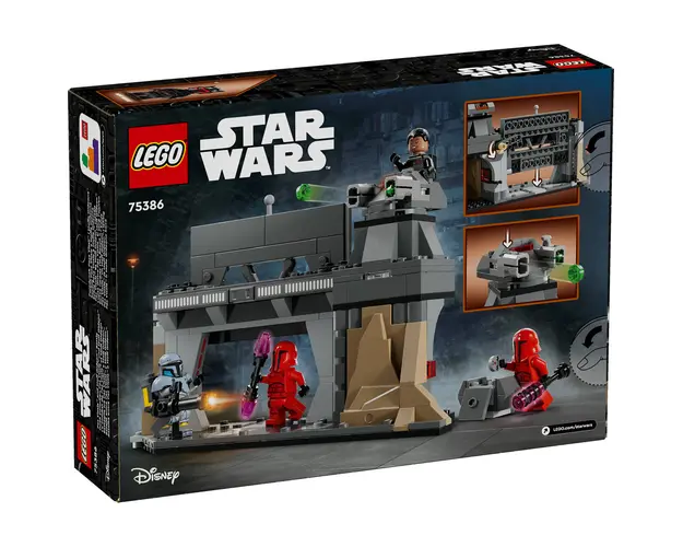 Construieşte intensitatea unei scene memorabile din sezonul 3 al serialului Star Wars: The Mandalorian cu setul LEGO® Star Wars™ Lupta dintre Paz Vizsla şi Moff Gideon (75386), conceput pentru fete, baieţi şi fani de 7+ ani. Un cadou fantasy grozav pentru copii, acest set cu jucarie construita din caramizi LEGO include o baza mandaloriana cu o uşa blindata cu un declanşator pentru trantirea uşii, panouri de control şi o turela rotativa care azvarle piroane. Setul include şi 4 minifigurine LEGO Star Wars: The Mandalorian de colecţie pentru a interpreta confruntarea dintre Paz Vizsla şi Moff Gideon (imbracat in armura de Dark Trooper) şi Garzile Pretoriene Imperiale, plus accesorii precum rucsacul cu propulsie al lui Moff Gideon şi o cutie de depozitare care conţine un detonator termal pentru joaca creativa.Imbunataţeşte aventura de construcţie a copiilor cu aplicaţia LEGO Builder, in care cei mici pot apropia şi roti versiunile digitale 3D ale construcţiilor, salva seturi şi monitoriza propriul progres.Baza mandaloriana poate fi conectata la formaţiunea stancoasa/peştera din Pachetul de lupta Ambuscada pe Mandalore 75373, vandut separat, pentru opţiuni suplimentare de joaca. Produsul cu denumirea Lupta dintre Paz Vizsla™ si Moff Gideon™ face parte din brandul Coletto, se afla in categoria Lego star wars si subcategoria