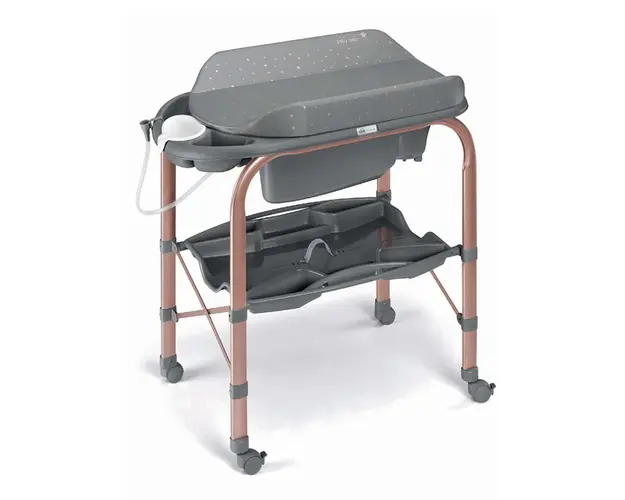 Masa de baie pliabila cu saltea de infasat, cadita anatomica cu furtun, roti cu blocare Cambio Deluxe, RoseGold recomandat de la 0 la 11 kg.nbsp DESCRIERE- Saltea de infasat moale cu sistem de preven Produsul cu denumirea Masa de infasat cu cadita anatomica Cambio Deluxe RoseGold face parte din brandul Amy, se afla in categoria Igiena si ingrijire si subcategoria