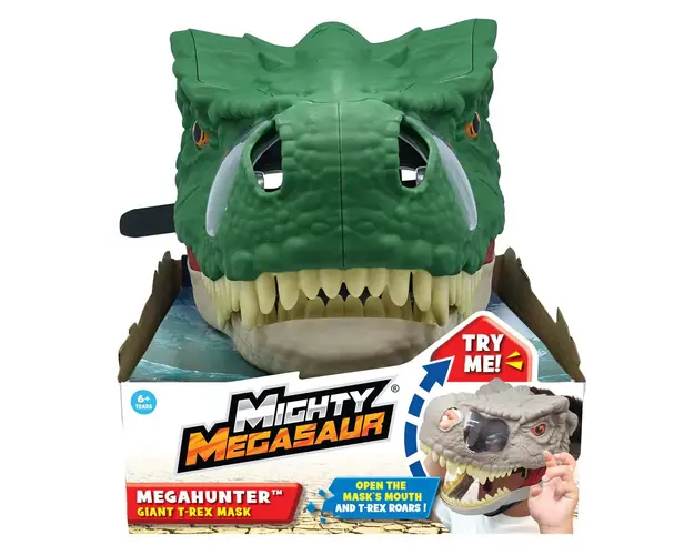 Caracteristici: Transforma-te intr-un dinozaur feroce cu aceasta masca cu sunete Dragon I Mighty Megasaur Mega Hunter Pentru jocul suprem de rol cu dinozauri, masca are 3 niveluri de deschidere a maxilarului si sunetele care se aud tot mai tare Pe masura ce copilul deschide gura, maxilarul devine mai lat si mai infricosator, iar urletul devine mai tare! Sprancenele se misca si ele, pentru un aspect mai aprig, alaturi de design, culoare si textura realiste! Cureaua reglabila se potriveste pentru orice marime a capului Gaurile pentru ochi si nas ofera vizibilitate dinozaurului furios in timpul jocului Traieste-ti visul de a deveni cu adevarat un Tyrannosaurus Rex! Necesita 2 baterii AAA/LR03 ( incluse in scop demonstrativ) Diverse modele Fiecare model se achizitioneaza separat Pretul este pentru o singura bucata Produsul cu denumirea Masca cu sunete Dragon I Mighty Megasaur Mega Hunter face parte din brandul Dragon-i, se afla in categoria Jucarii magnetice si subcategoria