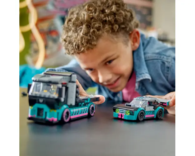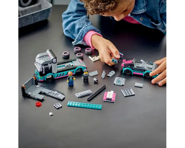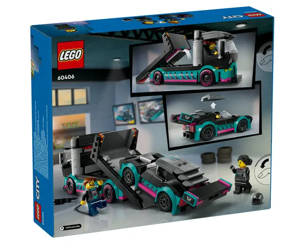 Accelereaza entuziasmul jucatorilor cu setul LEGO® City Masina de curse si camion transportator de masini (60406), cadoul perfect care alimenteaza pasiunea copiilor pentru masini si camioane de jucarie. Conceput pentru copii de 6 ani si mai mari, setul include un camion de curse cu o rampa de incarcare functionala si o masina de curse cool, cu suspensie coborata si aparatoare largi. Setul mai include si minifigurinele pilot de curse si sofer de camion pentru povesti si aventuri interpretate pe roluri.Setul Masina de curse si camion transportator de masini include un ghid de constructie tiparit, usor de urmat, si instructiuni 3D detaliate in aplicatia LEGO Builder. In aplicatie, copiii pot apropia si roti modelele pentru a le vizualiza din toate unghiurile pe masura ce le construiesc.Copiii cresc inconjurati de vehicule si masini uimitoare, iar cu seturile de constructie LEGO City Vehicule grozave, ei pot explora indeaproape modele realiste si personaje distractive care inspira joaca imaginativa fara restrictii. Produsul cu denumirea Masina de curse si camion transportator face parte din brandul Coletto, se afla in categoria Jucarii outdoor si subcategoria Produse noi