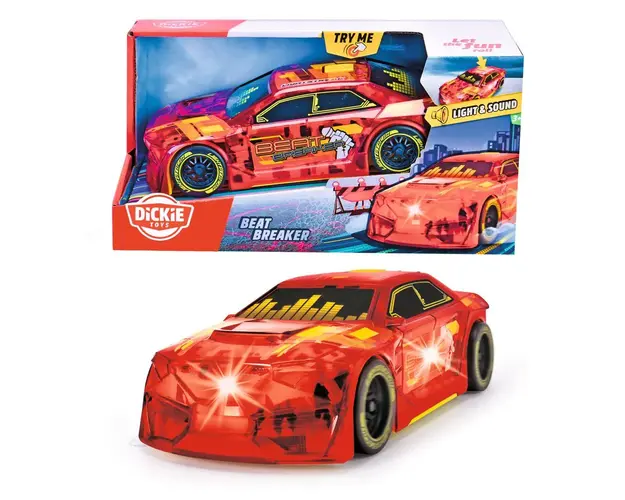 Caracteristici Masinuta Dickie Beat Breaker 20 cm: Masinuta are efecte luminoase si sonore Face parte din colectia Streets N Beatz Are motor cu frictiune care propulseaza masinuta inainte dupa ce este impinsa Motorasul functioneaza foarte usor si este intuitiv de folosit de catre copii de 3 ani si mai mari Necesita 3 baterii 1.5 V AA R06 Bateriile sunt incluse in set Dimensiuni: 20 cm Produsul cu denumirea Masinuta Dickie Beat Breaker 20 cm face parte din brandul Disquise, se afla in categoria Jucarii magnetice si subcategoria