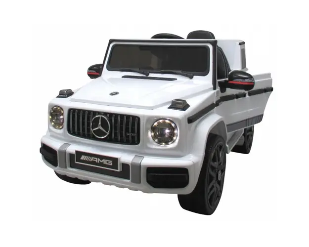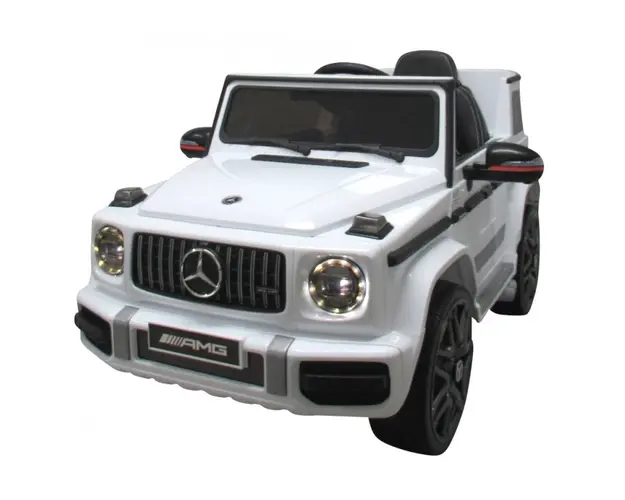 Masinuta electrica cu telecomanda, roti EVA si scaun piele Mercedes G63 alb