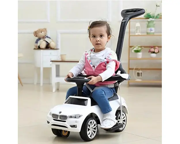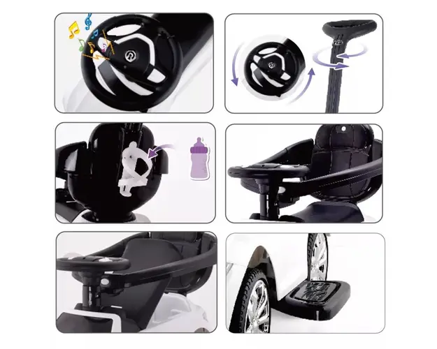 Masinuta fara pedale cu maner parental si volan cu functii muzicale White