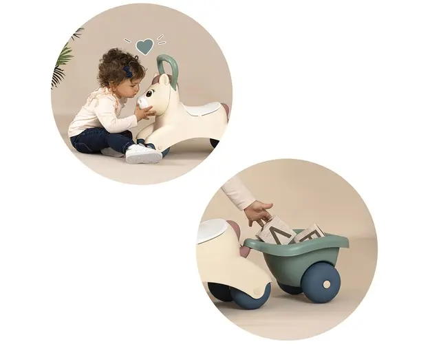 Detalii Masinuta de impins Smoby Pony cu remorcaCaracteristiciUn fermecator ponei cu un scaun confortabil, maner si remorca pentru transportul obiectelor miciIi incurajeaza pe copii sa invete sa mearg Produsul cu denumirea Masinuta de impins Pony cu remorca Smoby face parte din brandul Mebby, se afla in categoria Litere- limbaj- cifre si subcategoria