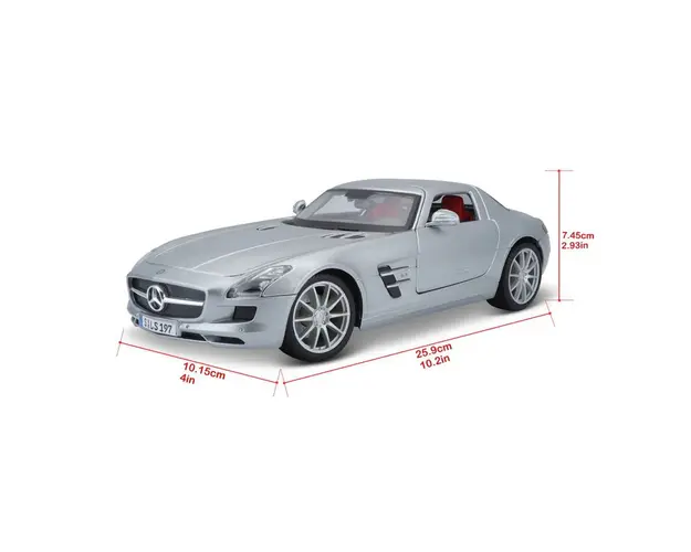Caracteristici Masinuta Maisto Special Edition Mercedes Benz SLS AMG 1:18: Masinuta are design realist, autentic modelului Mercedes Benz SLS AMG Caroseria este metalica Capota si portierele se pot deschide Scara: 1:18 Dimensiuni: 10.15 x 25.9 x 7.45 cm Produsul cu denumirea Masinuta Maisto Special Edition Mercedes Benz SLS AMG 1:18 face parte din brandul Magpaint, se afla in categoria Jucarii magnetice si subcategoria