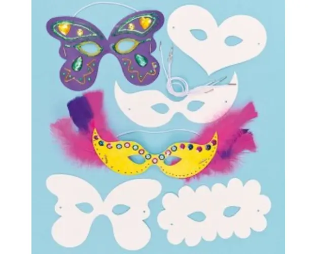 Masti de decorat pentru ochi - Baker Ross Decoreaza mastile folosind paiete,markere, tempera, creioane colorate, sclipici, vopsele acrilice etc Setul include 12 masti albe de decorat disponibile in 4 modele diferite. Mastile sunt prevazute cu elastic. Ideale pentru petreceri, carnaval, Halloween - in functie de modelul decorat. Dimensiune 17 cm x 20 cm Material: carton alb Produsul cu denumirea Masti de decorat pentru ochi - Baker Ross face parte din brandul Berg toys, se afla in categoria Decoreaza obiecte si subcategoria