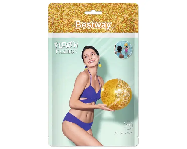 Minge gonflabila pentru plaja Bestway 41 cm cu sclipici Glitter Galben