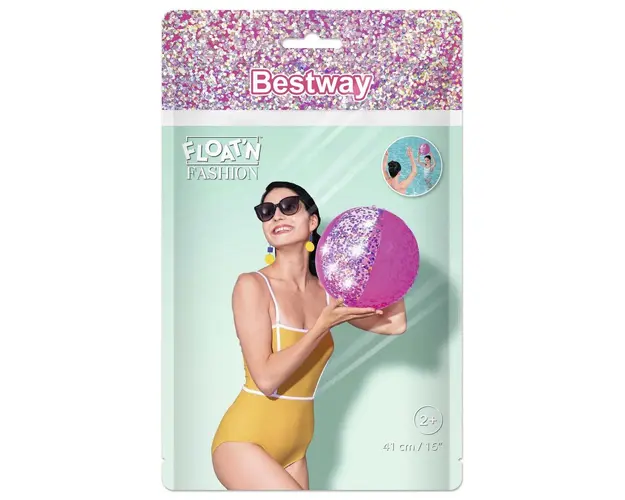 Minge gonflabila pentru plaja Bestway 41 cm cu sclipici Glitter Roz