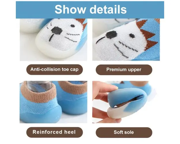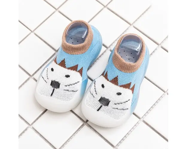 Mocasini bleu cu talpa antiderapanta - Animalutul alb