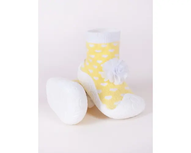 Mocasini galbeni pentru copii cu talpa antiderapanta - Floricica