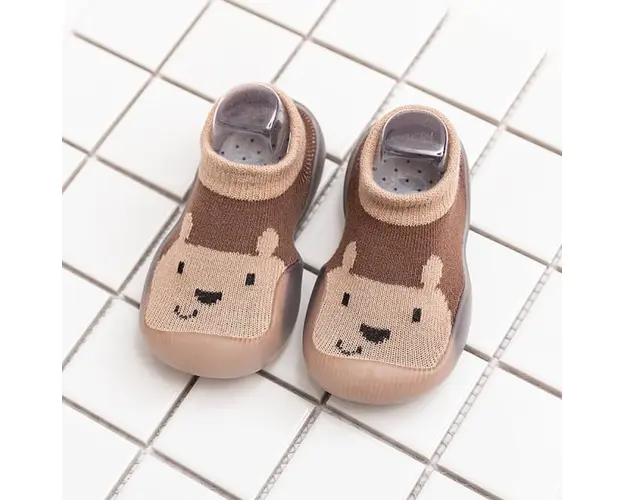 Marimi disponibile: 19 (lungime talpa la exterior 11 cm) 20 (lungime talpa la exterior 11.5 cm) 22 (lungime talpa la exterior 13 cm) 24 (lungime talpa la exterior 14 cm) 26 (lungime talpa la exterior 15 cm) Mocasini scurti, cu talpa antiderapanta pentru copii. Sunt ideali pentru primii pasi, talpa fiind foarte moale si flexibila, modelandu-se pe piciorusul copilului. Culoare: crem cu maro Compozitie ciorapel: 80% poliamid, 20% elastane Produsul cu denumirea Mocasini maro cu talpa antiderapanta - Teddy face parte din brandul Eurobaby, se afla in categoria Barbie si subcategoria