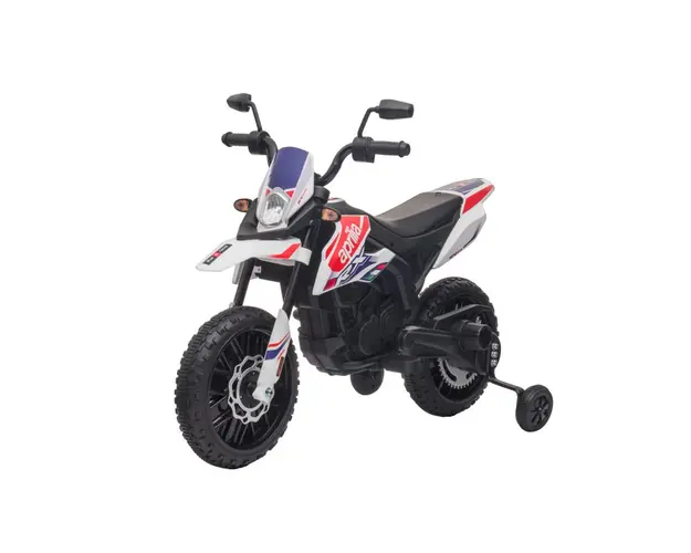 O uimitoare motocicleta electrica cu detalii realiste si roti auxiliare detasabileMulte motociclete electrice sunt concepute pentru a arata dragut sau copilaresc. Aprilia este insa o reproducere aproa Produsul cu denumirea Motocicleta electrica 12V cu roti EVA Aprilia White face parte din brandul Fria, se afla in categoria Litere- limbaj- cifre si subcategoria