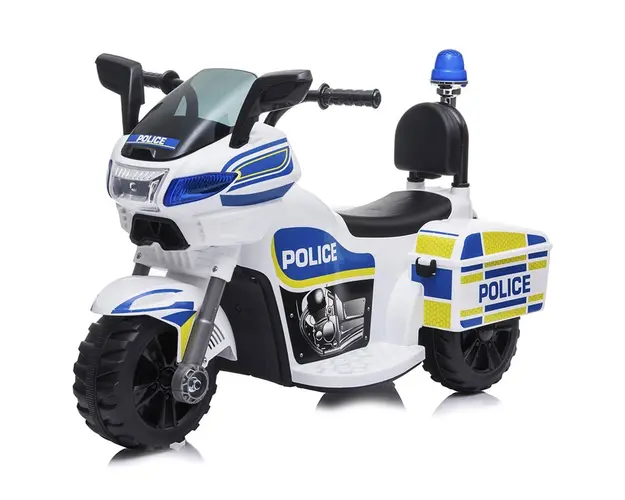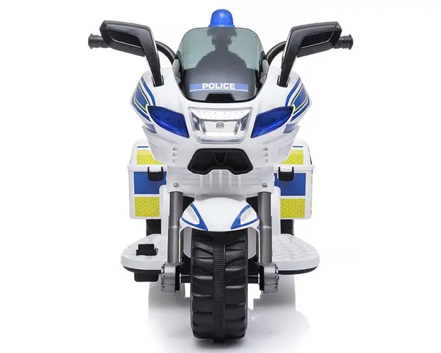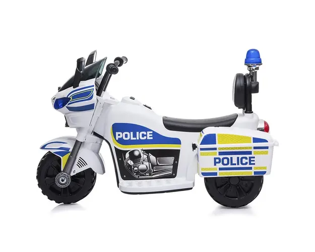 Detalii Motocicleta electrica Chipolino PoliceCaracteristiciDestinata copiilor de la 2 ani cu greutatea de pana la 20 kgBateria de 6 V, 4 AH si motorasul de 22 W face vehiculul sa inainteze cu viteza Produsul cu denumirea Motocicleta electrica Chipolino Police white face parte din brandul Chipolino, se afla in categoria Litere- limbaj- cifre si subcategoria
