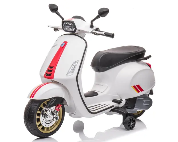 ndash Dimensiuni 107 x 47 x 73 cmndash mp3 player USBndash acumulator 12V 4 Ahndash Mers inainte si inapoindash Luminindash Sunetendash Roti ajutatoarendash Roti plastic Produsul cu denumirea Motocicleta electrica pentru copii Vespa 12V alb face parte din brandul Deseda, se afla in categoria Litere- limbaj- cifre si subcategoria