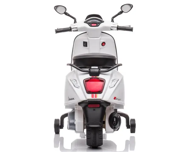 ndash Dimensiuni 107 x 47 x 73 cmndash mp3 player USBndash acumulator 12V 4 Ahndash Mers inainte si inapoindash Luminindash Sunetendash Roti ajutatoarendash Roti plastic Produsul cu denumirea Motocicleta electrica pentru copii Vespa 12V alb face parte din brandul Deseda, se afla in categoria Litere- limbaj- cifre si subcategoria