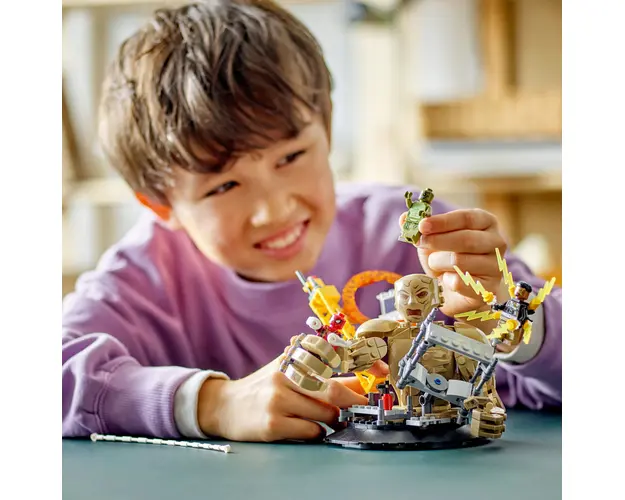 Data lansarii: 1 Ianuarie 2024Daca esti in cautarea unor cadouri populare pentru micii supereroi, LEGO® Marvel Omul Paiainjen vs Sandman: Batalia finala (76280) este o jucarie construibila de actiune pe care orice iubitor al filmelor Marvel si-o doreste. Jucaria recreeaza scena bataliei din productia Marvel Studios Omul-Paiainjen: Niciun drum spre casa si este un cadou excelent pentru copiii de 10+ ani.Setul LEGO Marvel multifatetat, construibil, cu Omul Paiainjen include 3 ticalosi: Sandman, Electro si Soparla (acesta este primul kit LEGO Marvel care include minifigurina Soparla). Avand mai multe locuri pentru plasarea minifigurinelor, posibilitatile pentru joaca si etalare sunt nelimitate. Copiii pot rasuci si roti minifigurina articulata reprezentand-ul pe Sandman si pot folosi mainile sale enorme ca sa-l prinda pe Omul Paiainjen in timp ce acesta sare pe deasupra, agatandu-se de franghia sa flexibila din panza de paiainjen. Ei pot extinde jucaria Marvel construibila combinandu-o cu setul Lupta finala a Omului Paiainjen (76261), vanduta separat. Pentru mai multa distractie digitala, constructorii pot apropia si roti modelele in 3D si-si pot monitoriza progresul folosind aplicatia interesanta si intuitiva LEGO Builder. Produsul cu denumirea Omul Paianjen vs Sandman: Batalia finala face parte din brandul Coletto, se afla in categoria Lego marvel super heroes si subcategoria