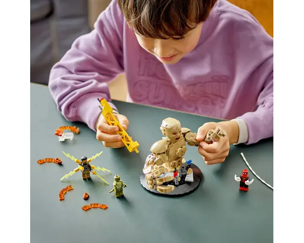 Data lansarii: 1 Ianuarie 2024Daca esti in cautarea unor cadouri populare pentru micii supereroi, LEGO® Marvel Omul Paiainjen vs Sandman: Batalia finala (76280) este o jucarie construibila de actiune pe care orice iubitor al filmelor Marvel si-o doreste. Jucaria recreeaza scena bataliei din productia Marvel Studios Omul-Paiainjen: Niciun drum spre casa si este un cadou excelent pentru copiii de 10+ ani.Setul LEGO Marvel multifatetat, construibil, cu Omul Paiainjen include 3 ticalosi: Sandman, Electro si Soparla (acesta este primul kit LEGO Marvel care include minifigurina Soparla). Avand mai multe locuri pentru plasarea minifigurinelor, posibilitatile pentru joaca si etalare sunt nelimitate. Copiii pot rasuci si roti minifigurina articulata reprezentand-ul pe Sandman si pot folosi mainile sale enorme ca sa-l prinda pe Omul Paiainjen in timp ce acesta sare pe deasupra, agatandu-se de franghia sa flexibila din panza de paiainjen. Ei pot extinde jucaria Marvel construibila combinandu-o cu setul Lupta finala a Omului Paiainjen (76261), vanduta separat. Pentru mai multa distractie digitala, constructorii pot apropia si roti modelele in 3D si-si pot monitoriza progresul folosind aplicatia interesanta si intuitiva LEGO Builder. Produsul cu denumirea Omul Paianjen vs Sandman: Batalia finala face parte din brandul Coletto, se afla in categoria Lego marvel super heroes si subcategoria
