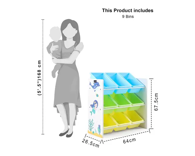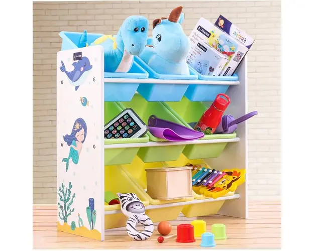 Organizator din lemn Ginger Home pentru jucarii cu 9 cutii din plastic Mermaid