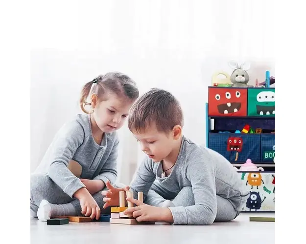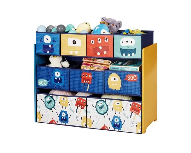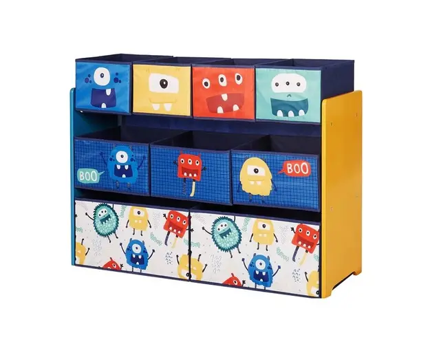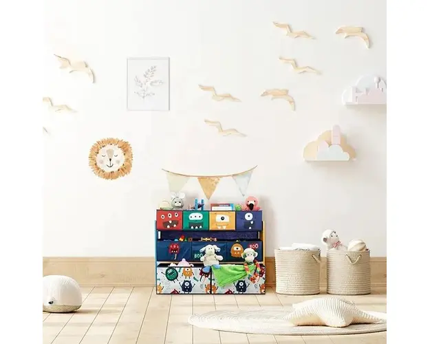Organizator din lemn Ginger Home pentru jucarii cu 9 cutii textile Monster