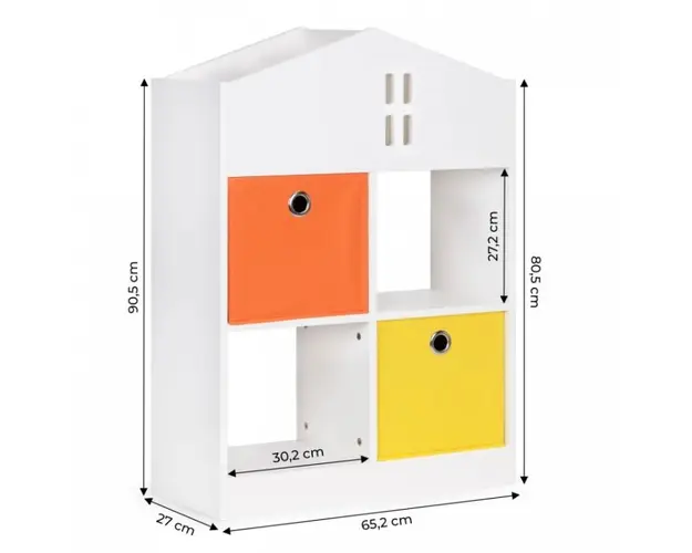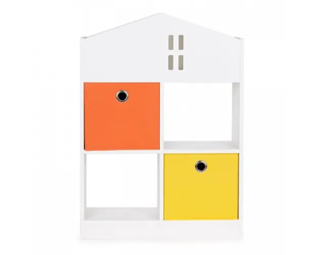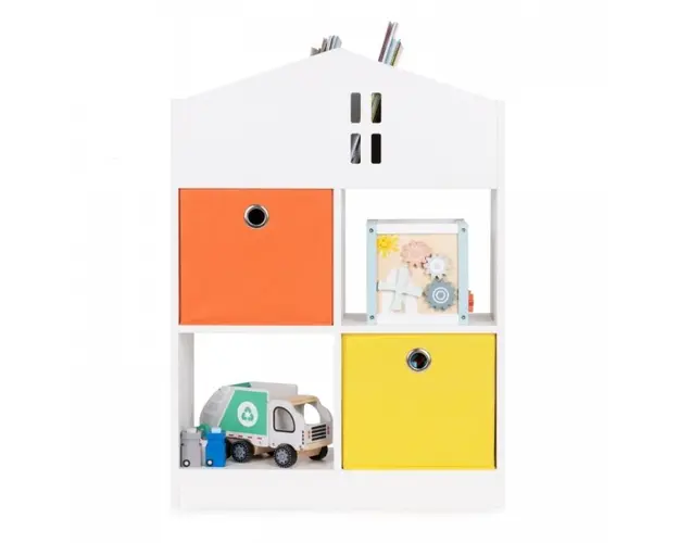 Mobilier de lemn din pal rezistent si finisat cu furnir rezistent. Are rafturi functionale si recipiente textile colorate pentru jucarii. Se va potrivi perfect in orice tip de interior.Dimensiuni 65.2 Produsul cu denumirea Organizator Ecotoys pentru jucariile copiilor in forma de casuta ZKB-03A face parte din brandul Mochtoys, se afla in categoria Costume carnaval copii si subcategoria