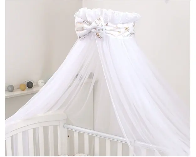 Baldachin din tul pentru patut bebe Sky Bunny Grey 160 x 600 cm suport prindere inclus