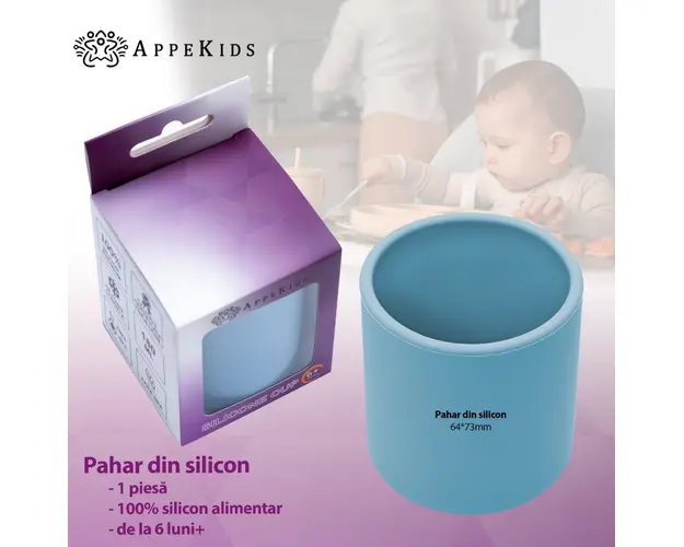 Suntem parinti si intotdeauna ne-am dorit tot ceea ce este mai bun pentru copiii nostri si ai tai.nbspStim ca toti parintii sunt ocupati si coplesiti de cotidian si ca isi doresc si ei cateva momente Produsul cu denumirea Pahar din silicon AppeKids Aqua Blue face parte din brandul Mykids, se afla in categoria Animale si subcategoria