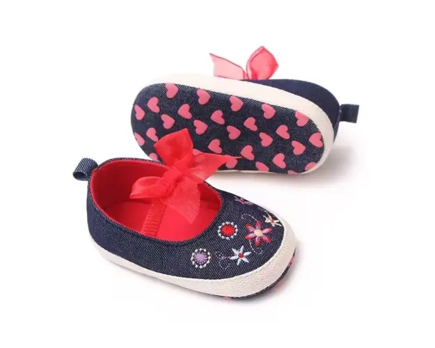 Marimi: 3-6 luni (lungime talpita la interior 10,5 cm, lungime talpita la exterior 11 cm) 6-9 luni (lungime talpita la interior 11,5 cm, lungime talpita la exterior 12 cm) 9-12 luni (lungime talpita la interior 12,7 cm, lungime talpita la exterior 13 cm) Culoare: bleumarine Material: textil Inchidere: banda elastica care se prinde de piciorus Talpa: textil cu inscriptie antiderapanta Ofera-i micutei tale un look chic si adorabil cu acesti pantofi de bebelusi din denim albastru, decorati cu broderii florale si fundite delicate rosii. Acesti pantofi sunt perfecti pentru orice ocazie speciala, combinand stilul modern cu confortul necesar pentru piciorusele fragile. Realizati din materiale moi si durabile, acesti pantofiori asigura o purtare confortabila pe tot parcursul zilei. Talpa flexibila si designul usor de incaltat fac din acesti pantofi o alegere ideala pentru micuta ta. Alege acesti pantofi pentru un stil vesel si plin de culoare! Produsul cu denumirea Pantofi din denim cu fundite si broderii florale face parte din brandul Eurobaby, se afla in categoria Tetine si subcategoria