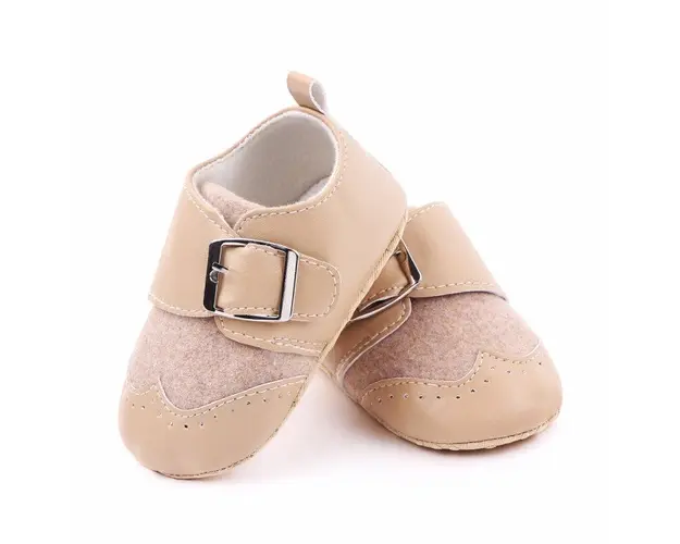 Marimi: 3-6 luni (lungimea talpitei: la interior - 10,5 cm; la exterior - 11 cm) 6-9 luni (lungimea talpitei: la interior - 11,5 cm; la exterior - 12 cm) 9 -12 luni (lungimea talpitei: la interior - 12,5 cm; la exterior - 13 cm) Pantofiori pentru bebelusi, din material tip piele intoarsa cu insertie de material tip piele ecologica. Se inchid cu bareta cu arici intr-o parte pe care este aplicata o catarama. Sunt potriviti pentru tinutele elegante ale micutului. Culoare: crem Talpa este din material textil cu inscriptie antiderapanta. Produsul cu denumirea Pantofi eleganti crem cu catarama face parte din brandul Superfinish, se afla in categoria Barbie si subcategoria