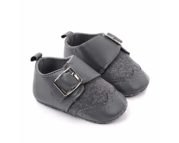 Marimi: 3-6 luni (lungimea talpitei: la interior - 10,5 cm; la exterior - 11 cm) 6-9 luni (lungimea talpitei: la interior - 11,5 cm; la exterior - 12 cm) 9 -12 luni (lungimea talpitei: la interior - 12,5 cm; la exterior - 13 cm) Pantofiori pentru bebelusi, din material textil cu insertie de material tip piele ecologica. Se inchid cu bareta cu arici intr-o parte pe care este aplicata o catarama. Sunt potriviti pentru tinutele elegante ale micutului. Culoare: gri Talpa este din material textil cu inscriptie antiderapanta. Produsul cu denumirea Pantofi eleganti gri cu catarama face parte din brandul Superfinish, se afla in categoria Barbie si subcategoria
