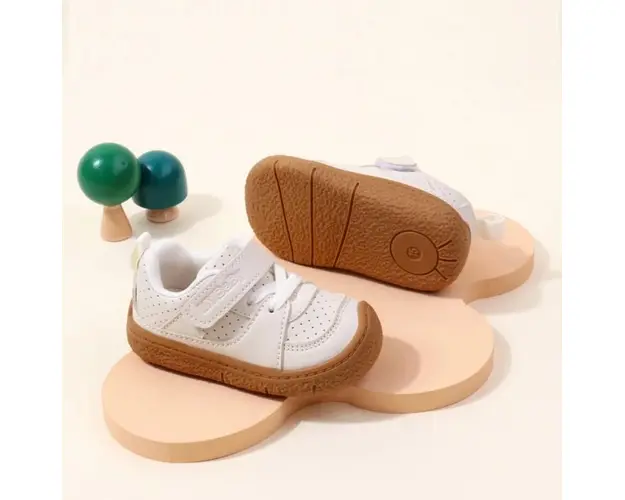Marimi: 19 (lungime talpita in interior 11,5 cm) (marime producator 15) 20 (lungime talpita in interior 12 cm) (marime producator 16) 21 (lungime talpita in interior 12,5 cm) (marime producator 17) 22 (lungime talpita in interior 13 cm) (marime producator 18) 23 (lungime talpita in interior 13,5 cm) (marime producator 19) 24 (lungime talpita in interior 14 cm) (marime producator 20) 25 (lungime talpita in interior 14,5 cm) (marime producator 21) 26 (lungime talpita in interior 15 cm) (marime producator 22) Culoare: ivoire Material: piele ecologica Inchidere: sireturi din elastic si bareta cu arici Talpa: flexibila, din cauciuc moale antiderapant Pantofi sport pentru bebelusi, realizati din piele ecologica de calitate superioara, cu perforatii pentru respirabilitate si confort sporit. Designul cu inchidere velcro si sireturi elastice asigura o fixare rapida si sigura, fiind ideali pentru activitatile zilnice si plimbarile in aer liber. Talpa flexibila si antiderapanta ofera stabilitate si siguranta la fiecare pas, in timp ce captuseala moale protejeaza picioarele delicate ale micutului. Acesti pantofi sunt usor de asortat cu orice tinuta casual, fiind perfecti pentru bebelusii activi. Produsul cu denumirea Pantofi sport ivoire pentru bebelusi face parte din brandul Eurobaby, se afla in categoria Barbie si subcategoria