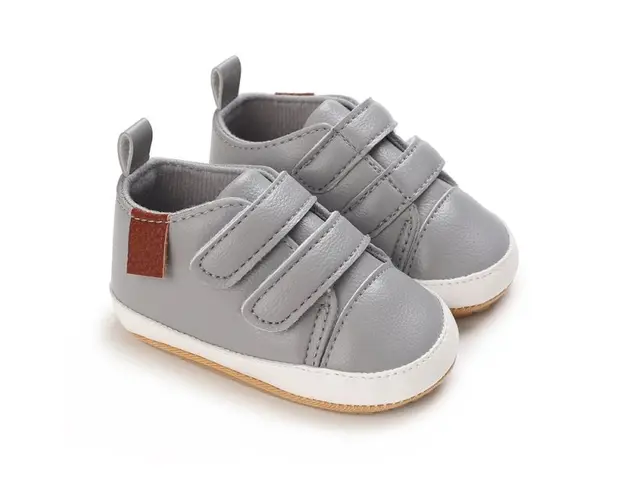 Pantofi sport pentru bebelusi, gri cu barete cu arici