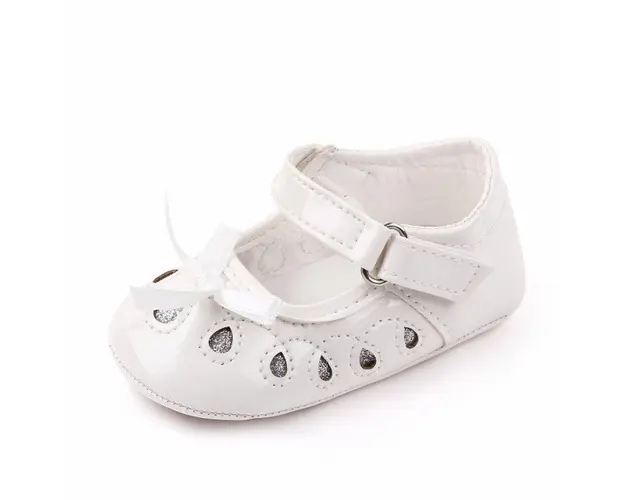 Marimi: 0-3 luni (lungimea talpitei: la interior - 10 cm; la exterior - 10,5 cm) 3-6 luni (lungimea talpitei: la interior - 10,5 cm; la exterior - 11 cm) 6-9 luni (lungimea talpitei: la interior - 11,5 cm; la exterior - 12 cm) Material: piele ecologica lacuita Culoare: alb Talpa: cauciuc moale antiderapant. Inchidere: arici intr-o parte Pantofiori eleganti pentru bebelusi, de culoare alba, realizati dintr-un material lucios de calitate superioara. Designul cu perforatii delicate si fundita decorativa adauga un plus de stil, facandu-i perfecti pentru evenimente speciale, precum botezuri sau petreceri. Inchiderea cu velcro asigura o fixare sigura si usoara, iar talpa moale ofera confort maxim pentru piciorusele bebelusului. Ideali pentru a completa tinuta festiva a micutei tale. Produsul cu denumirea Pantofiori albi din lac face parte din brandul , se afla in categoria Tetine si subcategoria