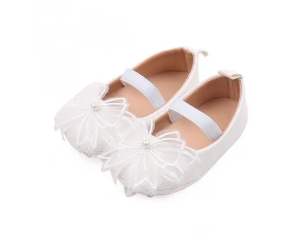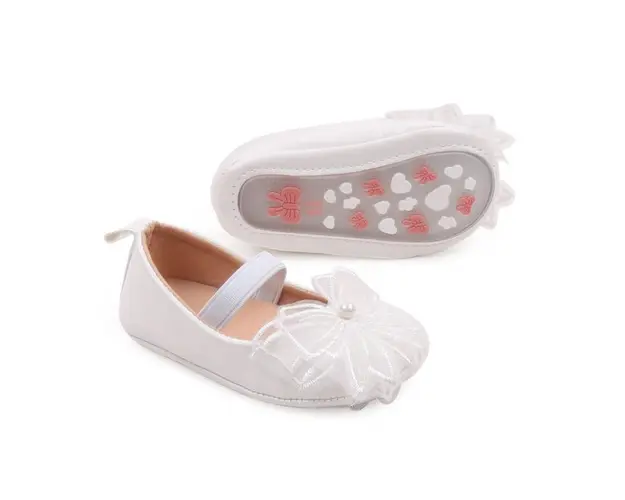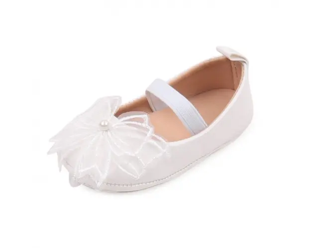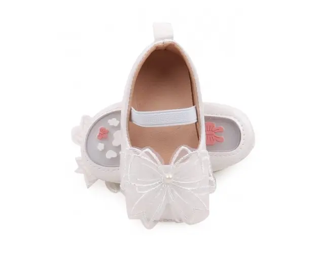 Marimi: 0-3 luni (lungimea talpitei: la interior - 10 cm; la exterior - 10,5 cm) 3-6 luni (lungimea talpitei: la interior - 10,5 cm; la exterior - 11 cm) 6-9 luni (lungimea talpitei: la interior - 11,5 cm; la exterior - 12 cm) Pantofiori pentru fetite, din material tip piele ecologica lacuita, cu o fundita dantelata aplicata in fata. Se prind de piciorus cu bareta din elastic. Culoare: alb Talpa: cauciuc moale antiderapant. Sunt ideali pentru tinutele de ocazie ale micutelor domnisoare. Produsul cu denumirea Pantofiori albi cu fundita dantelata face parte din brandul Eurobaby, se afla in categoria Tetine si subcategoria