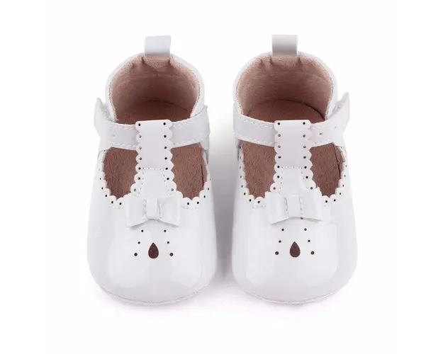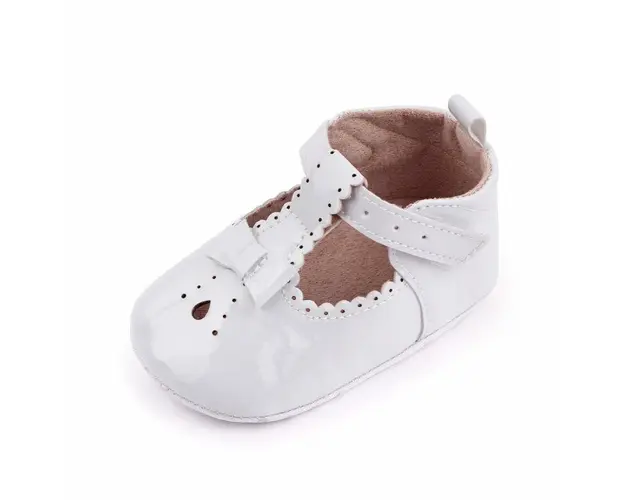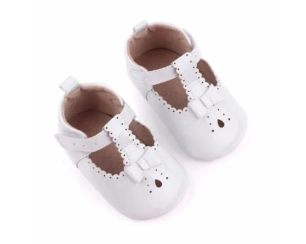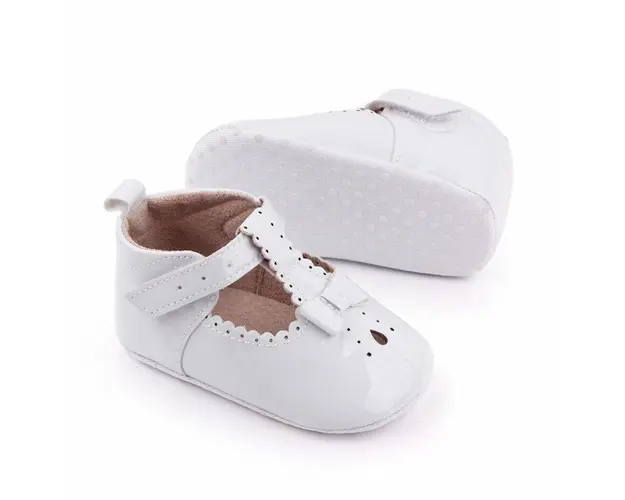 Marimi: 3-6 luni (lungimea talpitei: la interior - 10,5 cm; la exterior - 11 cm) 6-9 luni (lungimea talpitei: la interior - 11,5 cm; la exterior - 12 cm) 9 -12 luni (lungimea talpitei: la interior - 12,5 cm; la exterior - 13 cm) Pantofiori pentru fetite din material tip piele ecologica lacuita cu o fundita mica aplicata in fata. Se inchid cu bareta cu arici intr-o parte. Culoare: alb Talpa: din material textil cu inscriptie antiderapanta. Produsul cu denumirea Pantofiori albi lacuiti - Sunny face parte din brandul Eurobaby, se afla in categoria Tetine si subcategoria