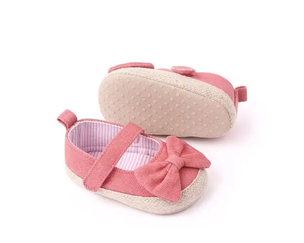 Marimi: 3-6 luni (lungimea talpitei: la interior - 10,5 cm; la exterior - 11 cm) 6-9 luni (lungimea talpitei: la interior - 11,5 cm; la exterior - 12 cm) 9 -12 luni (lungimea talpitei: la interior - 12,5 cm; la exterior - 13 cm) Pantofiori pentru fetite din material textil, cu o funda aplicata in fata. Se inchid cu bareta cu arici intr-o parte. Culoare: corai Talpa: din material textil cu inscriptie antiderapanta. Produsul cu denumirea Pantofiori corai pentru fetite - Bow face parte din brandul Eurobaby, se afla in categoria Tetine si subcategoria