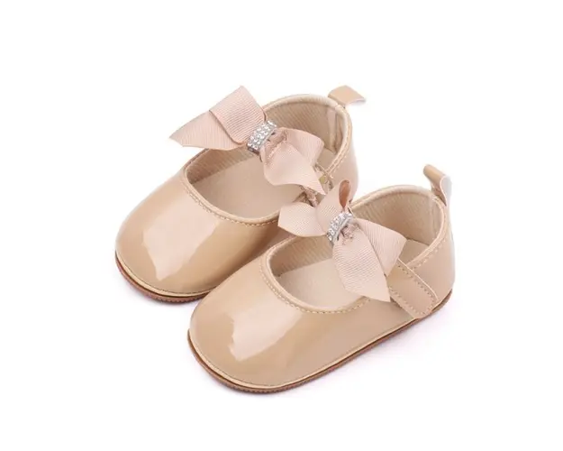 Marimi: 3 -6 luni (lungime talpita la interior 10,5 cm, lungime talpita la exterior 11 cm) 6-9 luni (lungime talpita la interior 11,6 cm, lungime talpita la exterior 12 cm) 9-12 luni (lungime talpita la interior 12,7 cm, lungime talpita la exterior 13 cm) Culoare: crem Material: piele ecologica lacuita Inchidere: bareta cu arici Talpa: cauciuc moale, antiderapant Pantofiori eleganti pentru bebelusi, realizati din piele ecologica lacuita, ofera un aspect rafinat si atragator. Decorati cu o fundita delicata si detalii stralucitoare, acestia sunt alegerea perfecta pentru evenimente speciale, cum ar fi botezul, aniversarile sau petrecerile. Sistemul de inchidere cu bareta velcro asigura o fixare sigura si rapida, iar talpa flexibila ofera confort si protectie pentru primii pasi ai micutului. Designul modern si materialele de calitate asigura nu doar un aspect estetic, ci si functionalitate. Produsul cu denumirea Pantofiori crem din lac cu fundita si strasuri face parte din brandul Eurobaby, se afla in categoria Tetine si subcategoria
