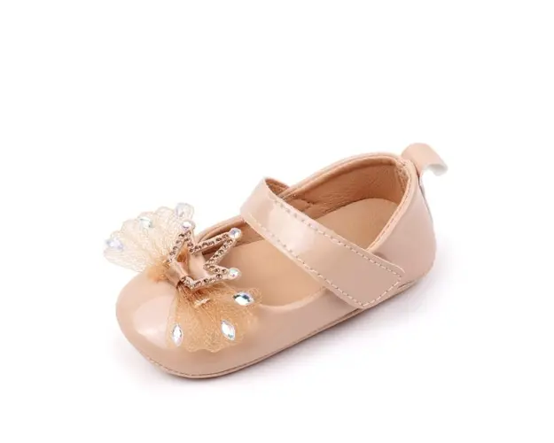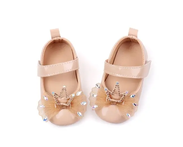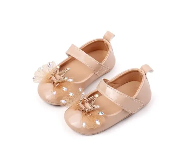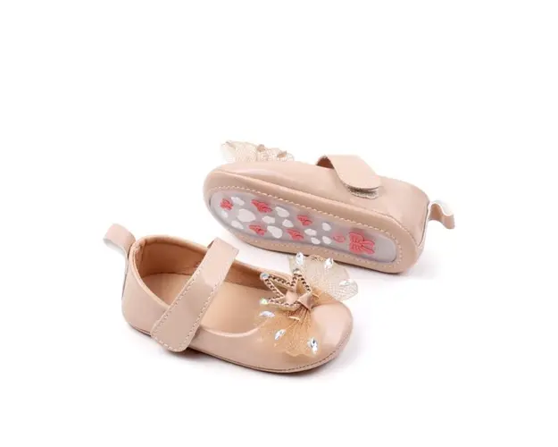Marimi: 0-3 luni (lungimea talpitei: la interior - 10 cm; la exterior - 10,5 cm) 3-6 luni (lungimea talpitei: la interior - 10,5 cm; la exterior - 11 cm) 6-9 luni (lungimea talpitei: la interior - 11,5 cm; la exterior - 12 cm) Culoare: crem Material: piele ecologica lacuita Inchidere: bareta cu arici Talpa: cauciuc moale antiderapant. Pantofiori eleganti pentru bebelusi, creati dintr-un material lacuit de inalta calitate, oferind un aspect stralucitor si rafinat. Acest model este accesorizat cu o fundita delicata, decorata cu pietricele stralucitoare, perfecti pentru evenimente speciale sau ocazii deosebite. Sistemul de inchidere cu velcro asigura o fixare sigura si o incaltare usoara. Talpa este moale si confortabila, fiind potrivita pentru primii pasi ai micutului tau. Pantofii sunt usori, oferind libertate de miscare si confort pe tot parcursul zilei. Acesti pantofi sunt ideali pentru petreceri, botezuri sau alte evenimente importante, adaugand un plus de eleganta tinutei bebelusului. Disponibili intr-o culoare neutra si versatila, sunt usor de asortat cu diverse articole vestimentare. Produsul cu denumirea Pantofiori crem din piele ecologica lacuita - Princess face parte din brandul Eurobaby, se afla in categoria Tetine si subcategoria