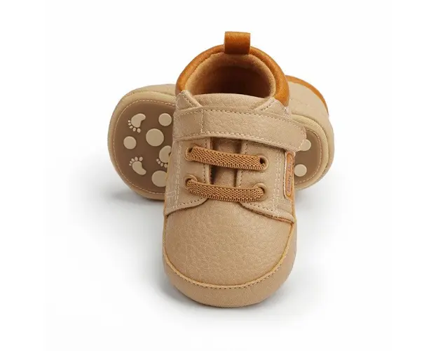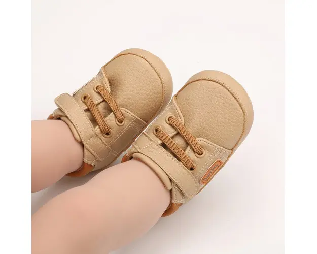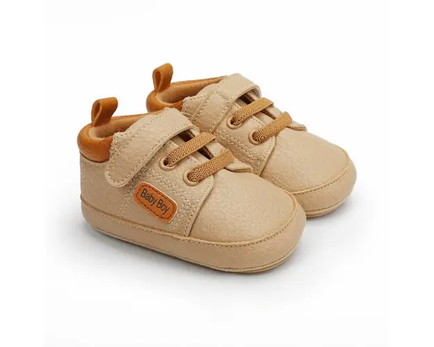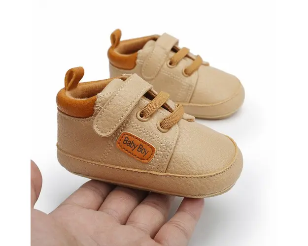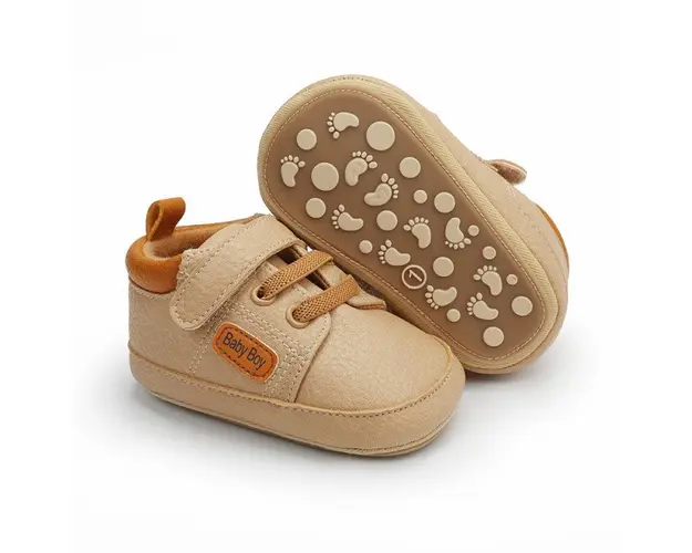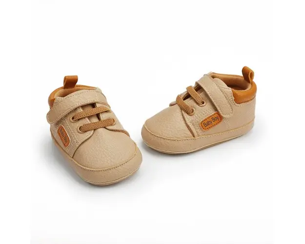 Marimi: 3 -6 luni ( lungime talpita la interior 10,5 cm, lungime talpita la exterior 11 cm) 6-9 luni ( lungime talpita la interior 11,6 cm, lungime talpita la exterior 12 cm) 9-12 luni (lungime talpita la interior 12,7 cm, lungime talpita la exterior 13 cm) Pantofiori pentru bebelusi, din material tip piele ecologica, se inchid cu sireturi din elastic si bareta cu arici intr-o parte. Culoare: crem Talpa: cauciuc moale si flexibil, antiderapant Produsul cu denumirea Pantofiori crem pentru baietei - Baby Boy face parte din brandul Eurobaby, se afla in categoria Barbie si subcategoria