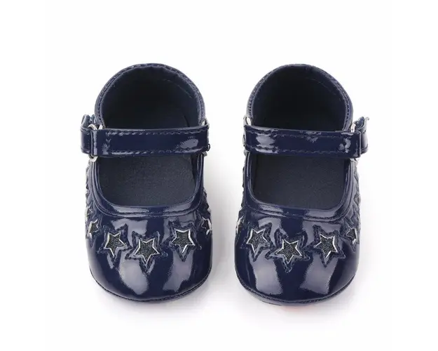 Marimi: 0- 3 luni (lungimea talpitei: la interior - 10 cm; la exterior - 10,5 cm) 3-6 luni (lungimea talpitei: la interior - 11 cm; la exterior - 11,5 cm) 6-9 luni (lungimea talpitei: la interior - 12 cm; la exterior - 12,5 cm) Pantofiori pentru fetite, din lac, cu stelute decupate cu sclipici in interior. Se inchid cu bareta cu arici intr-o parte. Culoare: bleumarine Talpa: din material tip piele ecologica cu insertie de cauciuc antiderapant Produsul cu denumirea Pantofiori din lac bleumarine cu stelute face parte din brandul , se afla in categoria Tetine si subcategoria
