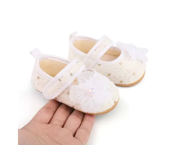 Marimi: 3-6 luni (lungime talpita la interior 10,5 cm, lungime talpita la exterior 11 cm) 6-9 luni (lungime talpita la interior 11,5 cm, lungime talpita la exterior 12 cm) 9-12 luni (lungime talpita la interior 12,7 cm, lungime talpita la exterior 13 cm) Culoare: ivoire Material: textil Inchidere: bareta cu arici Talpa: cauciuc moale antiderapant Pantofiori eleganti pentru bebelusi, de culoare ivoire, confectionati din dantela delicata, perfecti pentru evenimente speciale sau ocazii festive. Talpa flexibila si antiderapanta, ofera siguranta la primii pasi. Inchiderea cu bareta cu scai asigura o potrivire confortabila si usoara. Detaliul floral din fata, cu o margeluta stralucitoare, adauga un plus de rafinament si stil. Acesti pantofiori sunt ideali pentru botezuri, petreceri sau alte evenimente speciale, fiind in acelasi timp comozi si usor de purtat. Produsul cu denumirea Pantofiori eleganti ivoire pentru bebelusi face parte din brandul Sevibebe, se afla in categoria Tetine si subcategoria
