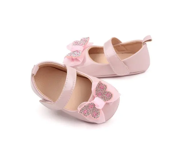 Pantofiori cu fluturas cu strasuri, roz, din lac