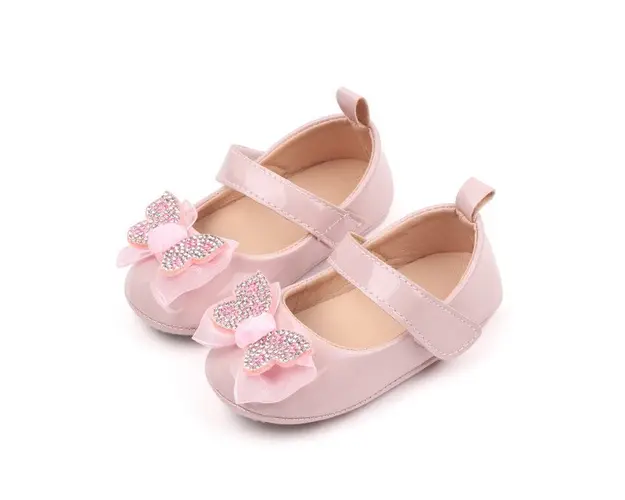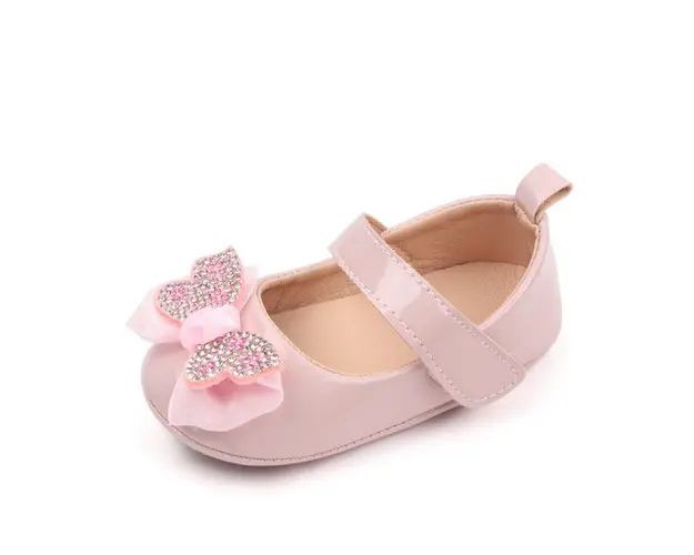 Marimi: 0-3 luni (lungimea talpitei: la interior - 10 cm; la exterior - 10,5 cm) 3-6 luni (lungimea talpitei: la interior - 10,5 cm; la exterior - 11 cm) 6-9 luni (lungimea talpitei: la interior - 11,5 cm; la exterior - 12 cm) Pantofiori pentru fetite, din material tip piele ecologica lacuita, cu un fluturas cu strasuri aplicat in fata. Se inchid cu bareta cu arici intr-o parte. Culoare: roz Talpa: cauciuc moale antiderapant. Sunt ideali pentru tinutele de ocazie ale micutelor domnisoare. Produsul cu denumirea Pantofiori cu fluturas cu strasuri, roz, din lac face parte din brandul Eurobaby, se afla in categoria Tetine si subcategoria