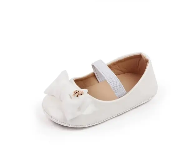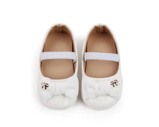 Marimi: 0-3 luni (lungimea talpitei: la interior - 10 cm; la exterior - 10,5 cm) 3-6 luni (lungimea talpitei: la interior - 10,5 cm; la exterior - 11 cm) 6-9 luni (lungimea talpitei: la interior - 11,5 cm; la exterior - 12 cm) Pantofiori pentru fetite, din material tip piele ecologica lacuita, cu o fundita aplicata in fata. Se prind de piciorus cu bareta din elastic. Culoare: alb Talpa: cauciuc moale antiderapant. Sunt ideali pentru tinutele de ocazie ale micutelor domnisoare. Produsul cu denumirea Pantofiori cu fundita, albi, din lac face parte din brandul Eurobaby, se afla in categoria Tetine si subcategoria
